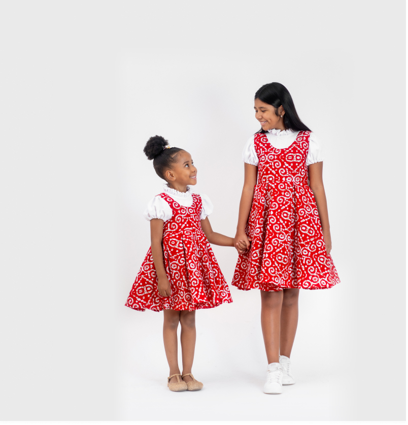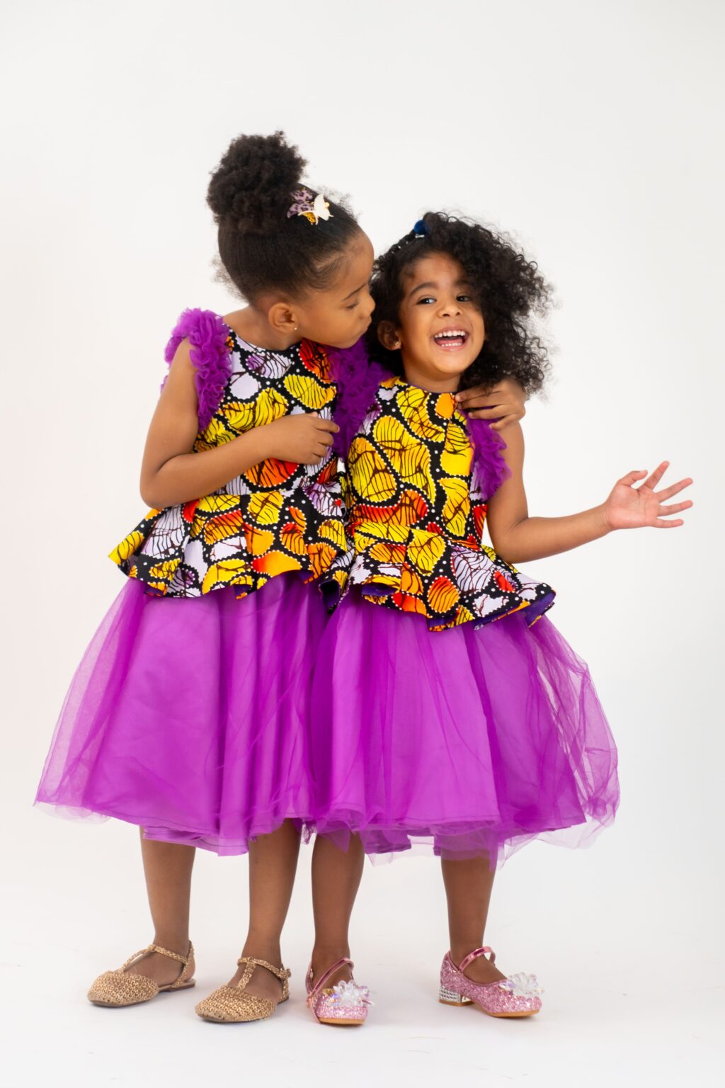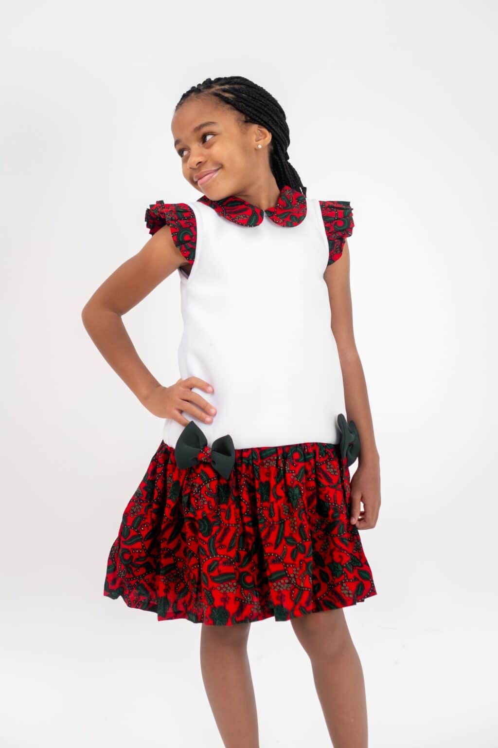 Vestido juvenil africano con mangas voladas estampados con tela africana.