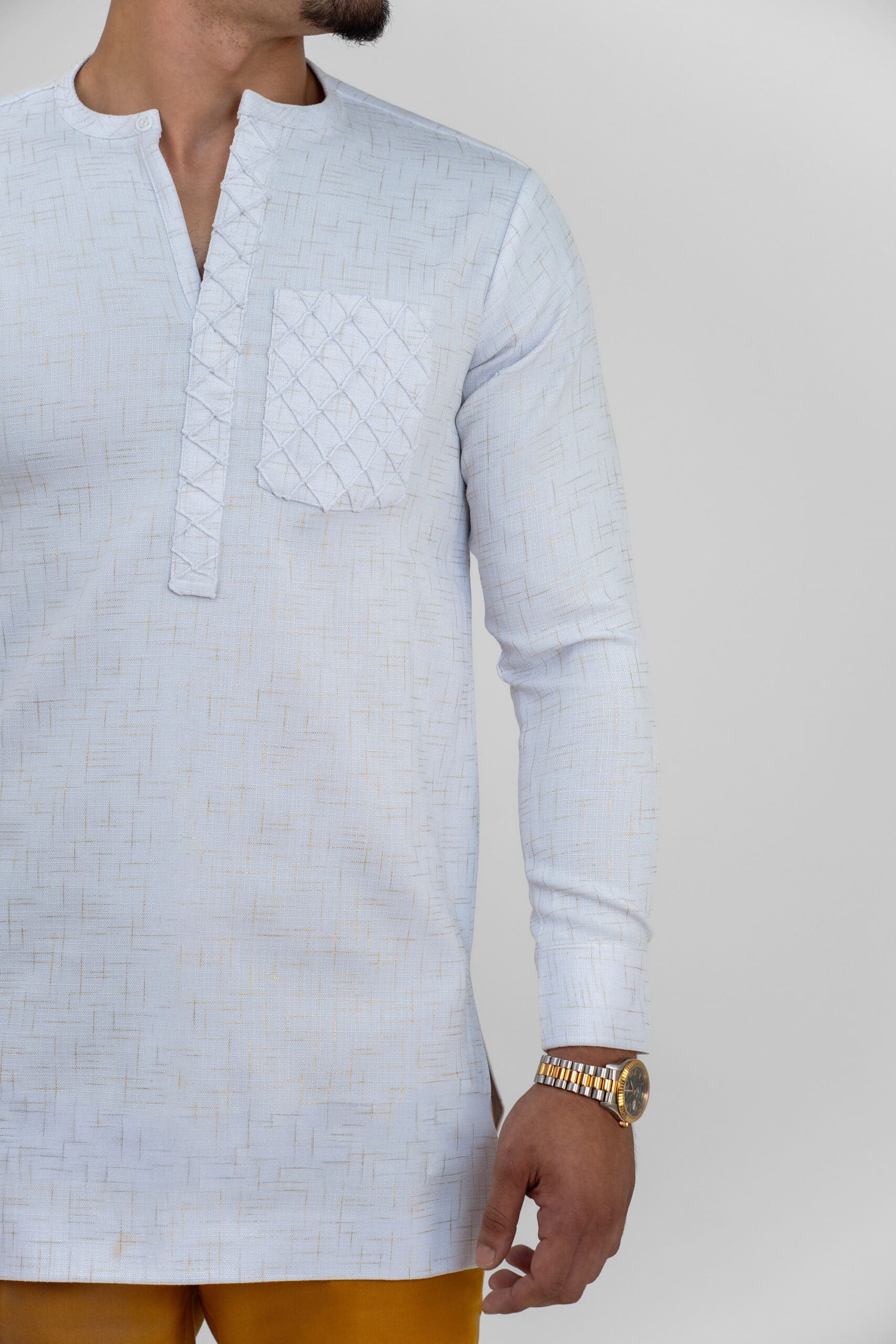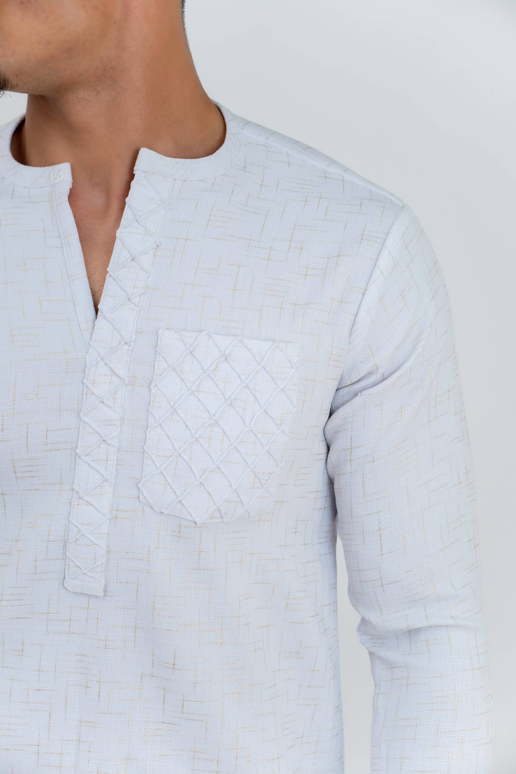 Camisa y pantalón de manga larga para hombre. Traje moderno africano con estampado dorado con cuello en v.