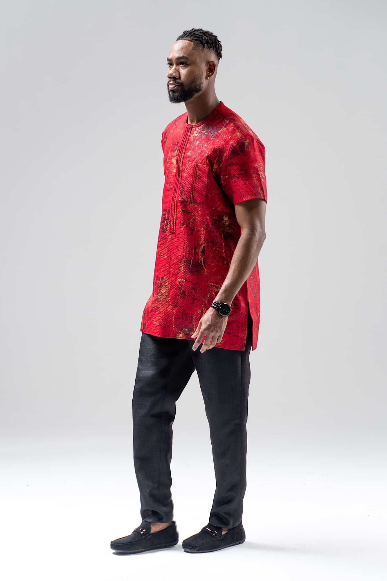 El conjunto ade está diseñado para eventos formales. compuesto con un pantalón y una camiseta ambos diseñados con un estilo africano moderno y sofisticado. La parte de arriba con colores vibrantes y patrones tradicionales africanos le da a este conjunto un toque único y cultural.